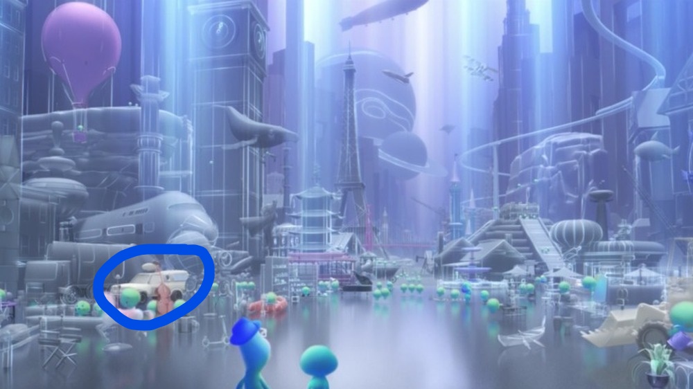 There are more in here, but the Pizza Planet Truck stuck out to me. The whale to the top left is from “Finding Dory”. There is a pyramid to the right and that could be from “Coco”. It looks like there is the Golden Gate Bridge so that could be from “Big Hero 6” or “Inside Out”. Like I said there are many in these scene 😊 How many did you find?