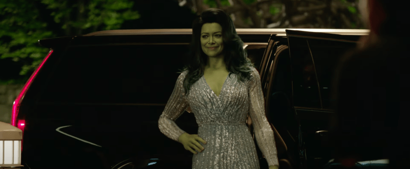 The next day we see Daredevil doing a walk of shame. Also, Jen and Nikki get ready to head over to the gala where Jen is winning a female lawyer award. At the gala, many women are recognized at once for their hard work. When it gets to She-Hulk, she is interrupted by someone talking on the TV behind her. They release a video of when her and Josh hook up and the person calls Jen/She-Hulk a slut. She-Hulk smashes the TV and smashes her way out of the award room. She is stopped by police with guns all pointed at her.